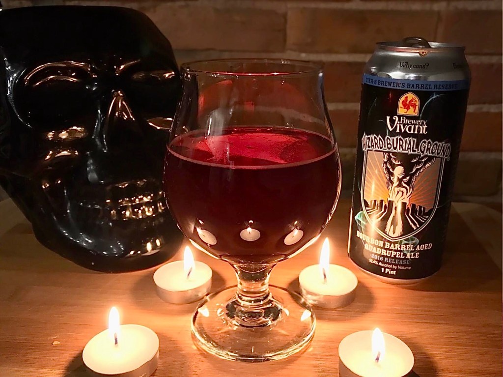 Welcome back to The Pint Sized Review! Tonight’s beer is *rolls for perception check, get’s nat 20* Wizard burial Ground by Brewery Vivant! A bourbon barrel aged Quadrupel Ale that looks as wicked as it sounds.